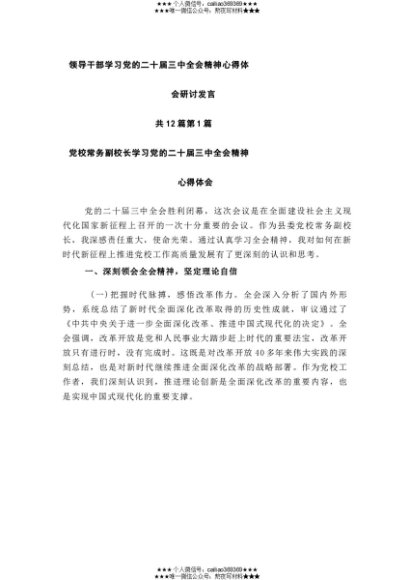 / 【2024年】(12篇)领导干部学习党的二十届三中全会精神心得体会研讨发言材料严选、写材料写出头】
