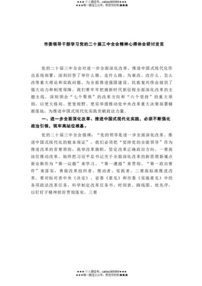 / 【2024年】(11篇)市委领导干部学习党的二十届三中全会精神心得体会研讨发言范文文库大