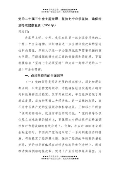 / 【2024年】(党课宣讲稿)党的二十届三中全主题党课:坚持七个必须坚持,确保经济持续健康发展
